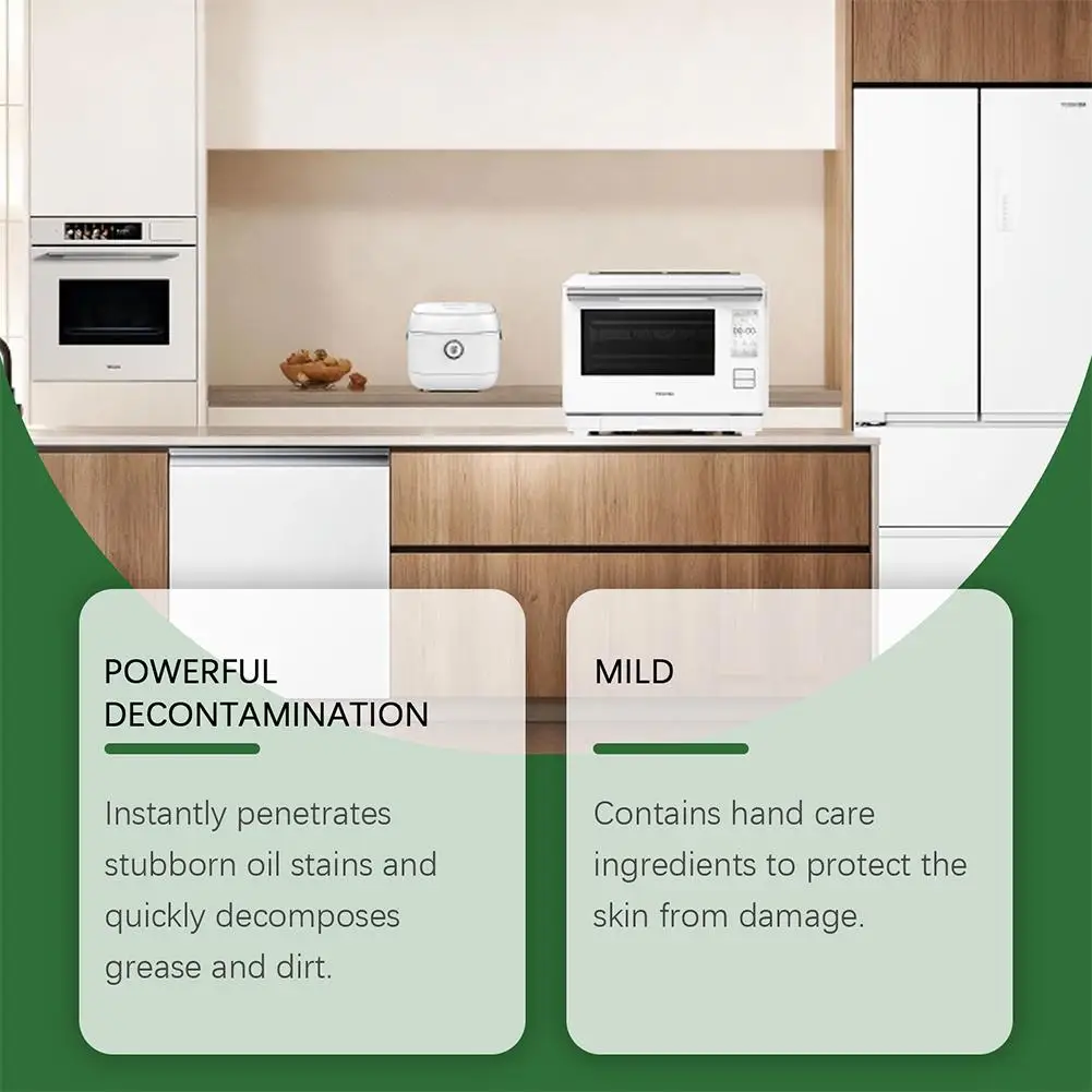 2. Gentle and Safe Formula: Our gentle formula uses ingredients specifically designed for hard kitchen surfaces, including sodium lauryl ether sulfate, fatty alcohol polyoxyethylene ether, and decyl glucoside. It is gentle on hands and effectively removes dirt, creating a clean environment without leaving irritating residue.