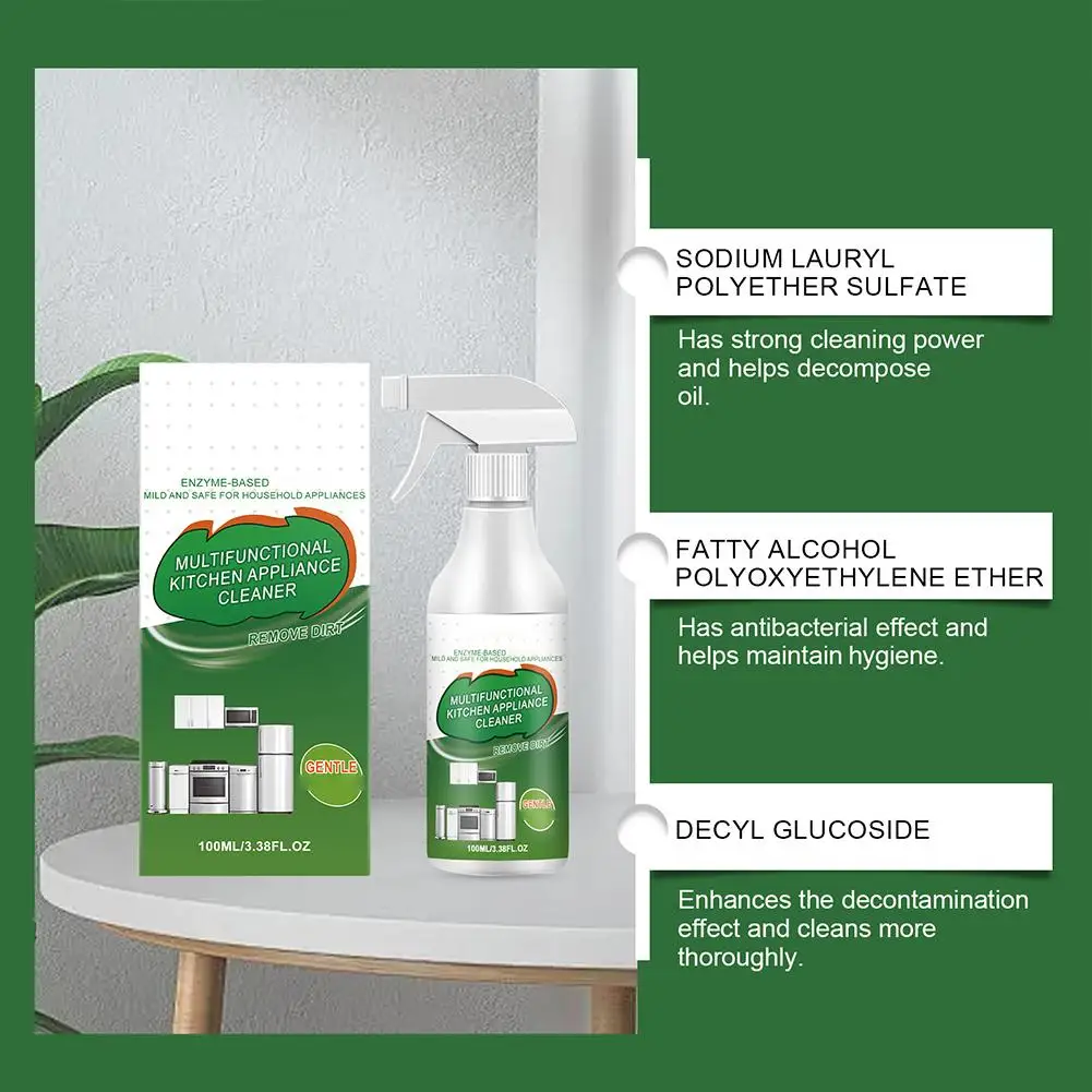 1. Powerful Cleaning: This multi-purpose kitchen appliance cleaner uses a highly effective enzyme-based formula that quickly penetrates and dissolves stubborn grease, grime, and dirt. Experience fast and effective cleaning, leaving your kitchen surfaces sparkling clean.