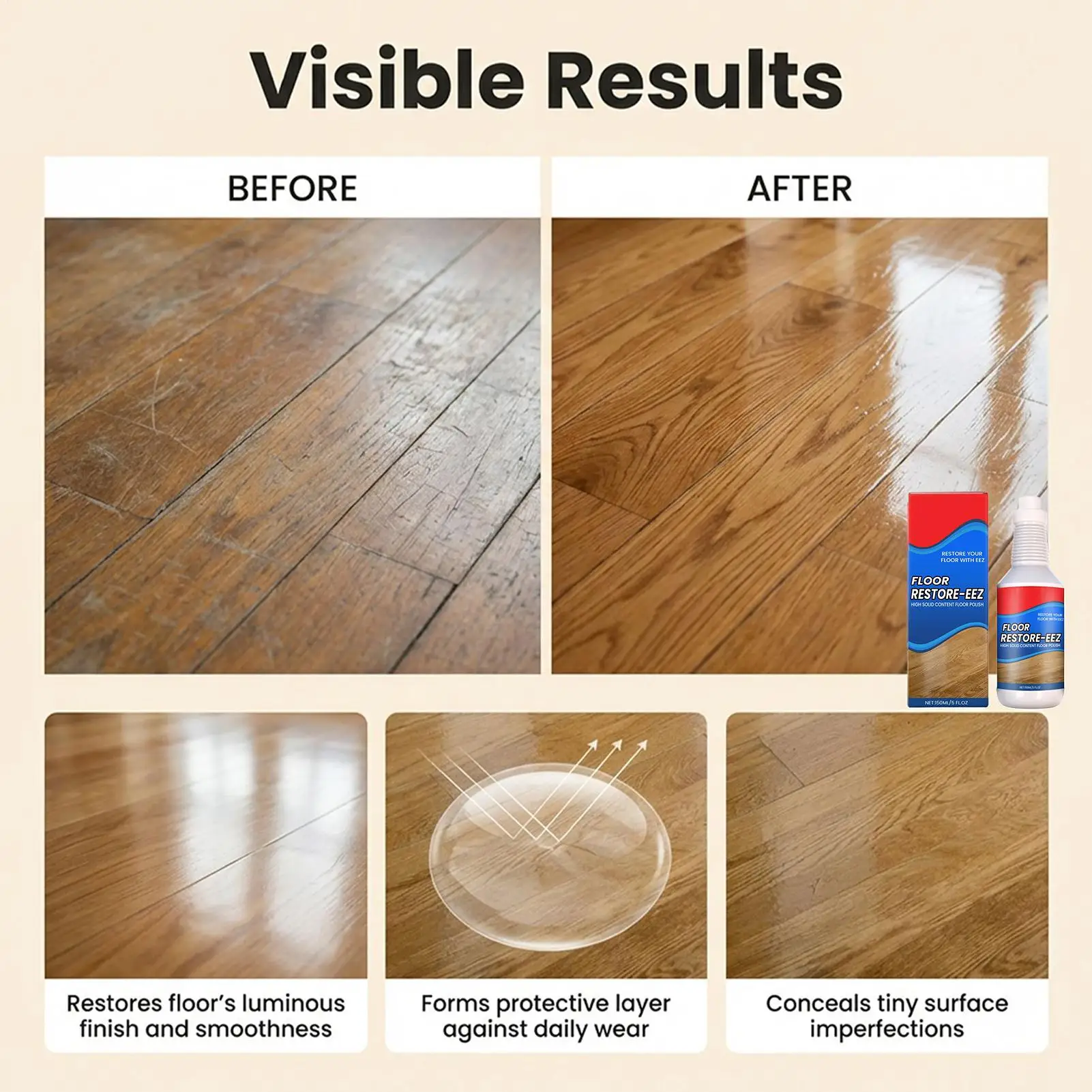 1.Daily Shine Maintenance: This wood floor restorer is designed for daily cleaning maintenance, enhancing the natural brightness of wooden floors and removing dullness effortlessly; perfect for preserving the beauty of your home environment with minimal effort